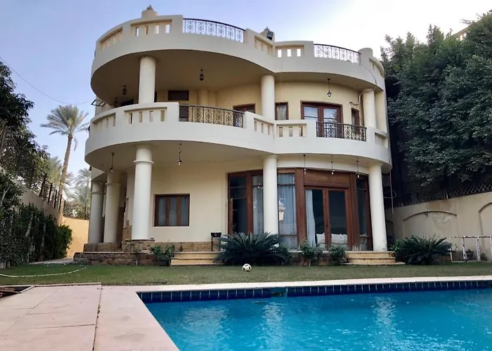 تقع الفيلا المكونة من 5 حمام على بعد 37 دقيقة بالسيارة من مطار القاهرة الدولي وعلى بُعد 15 دقيقة بالسيارة من هرم خفرع. يقع مكان الإقامة على مسافة نحو 6 كم من تمثال أبو الهول بالجيزة، وعلى بعد 7 كم من الأماكن الثقافية مثل سفينة خوفو.